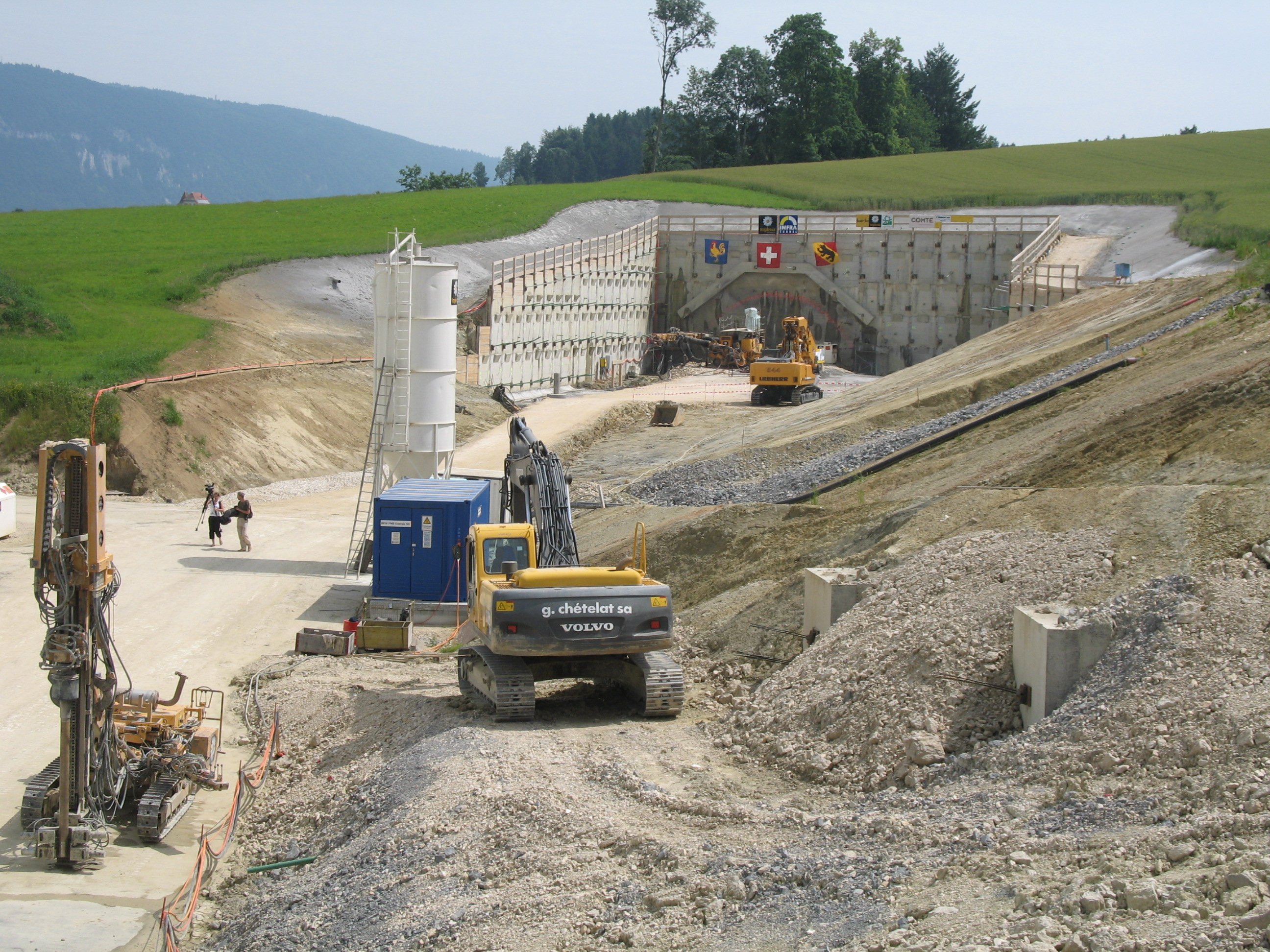 Projektierung und Bauleitung für den doppelspurigen, 2‘000m langen Bahntunnel. Tagbaustrecken von 120m resp. 50m Länge je mit seitlicher Zentrale. Notausstieg in der Mitte des bergmännischen Tunnels. Schwierige geologische Verhältnisse, da das sandsteinförmige Gestein sehr viel Wasser führt. Vortrieb mit Rohrschirmprinzip und späterem Strossen- und Sohlenabbau mit Fräsmaschinen. Tiefe Baugruben mit anspruchsvollen Spezialtiefbauarbeiten (Rückverankerte Bohrpfahlwände, Nagelwände, Grossrohr-pfähle, Rühlwände). 1.6 km Doppesspurausbau Trassee mit Anbindung an Bestandeslinie unter Bahnbetrieb, Dammverbreiterung. Umbau Bahnhof Rosshäusern. Mehrere Baustellenerschliessungen und Installationsplätze.