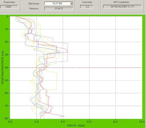 - Durchführung von Bodendichtemessungen bei temporär beanspruchten FFF (Eindringwiderstand mit Penetrologger) gemäss behördlicher Auflage