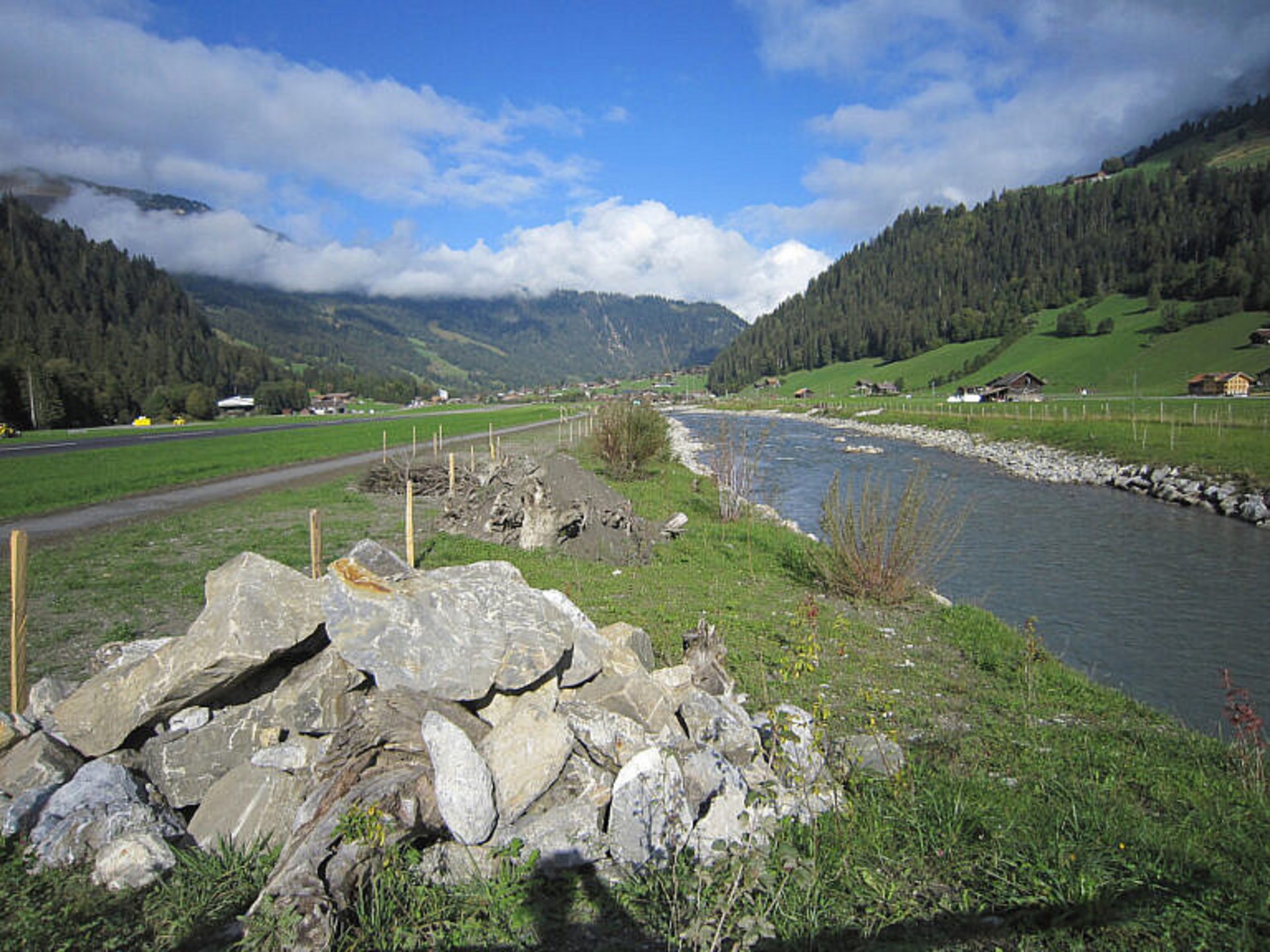 Die unzureichende Abflusskapazität der Simme neben dem Flugplatz St. Stephan hat zu wiederholten Überschwemmungen geführt. Das Ziel dieses Projekt war daher die Verbesserung des Hochwasserschutzes der Simme zwischen der Mündung des Färmelbachs und der Hanglisbrücke durch eine Verbreiterung der Gerinnesohle und der Erstellung beidseitiger Schutzdämme. Dieses Vorhaben ermöglichte gleichzeitig die ökologische Aufwertung des Uferbereichs. Das Projekt wurde in enger Abstimmung mit der Umnutzung des Flugplatzes St. Stephan und in Zusammenarbeit mit der Gemeinde St. Stephan durchgeführt.